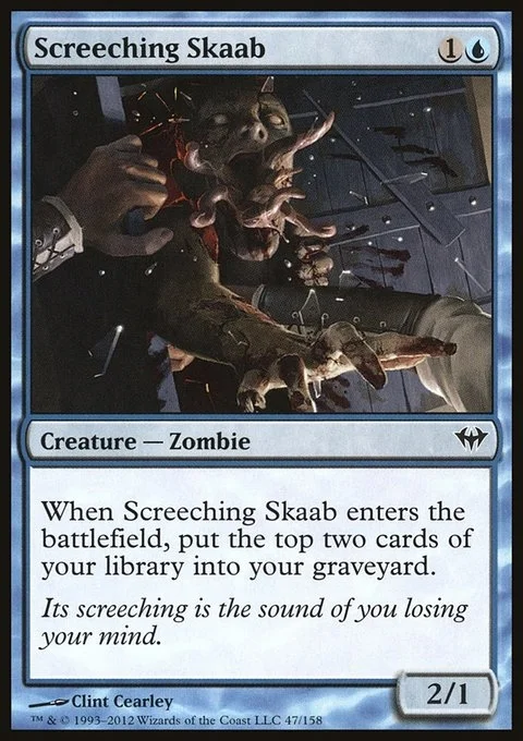 When Screeching Skaab enters the battlefield, put the top two cards of your library into your graveyard.