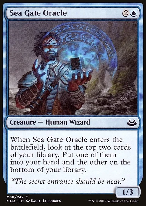 When this creature enters, look at the top two cards of your library. Put one of them into your hand and the other on the bottom of your library.