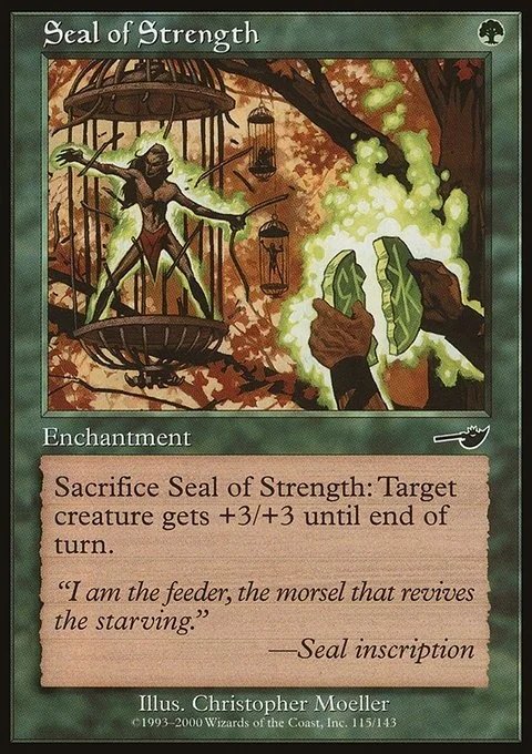 Sacrifice Seal of Strength: Target creature gets +3/+3 until end of turn.