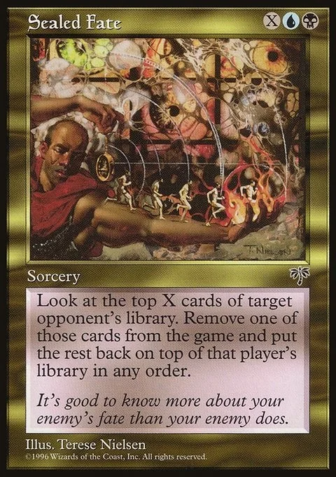 Look at the top X cards of target opponent's library. Exile one of those cards and put the rest back on top of that player's library in any order.