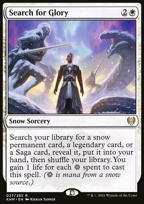 Search your library for a snow permanent card, a legendary card, or a Saga card, reveal it, put it into your hand, then shuffle. You gain 1 life for each {S} spent to cast this spell. ({S} is mana from a snow source.)