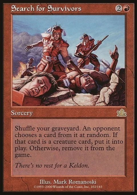 Reorder your graveyard at random. An opponent chooses a card at random in your graveyard. If it's a creature card, put it onto the battlefield. Otherwise, exile it.