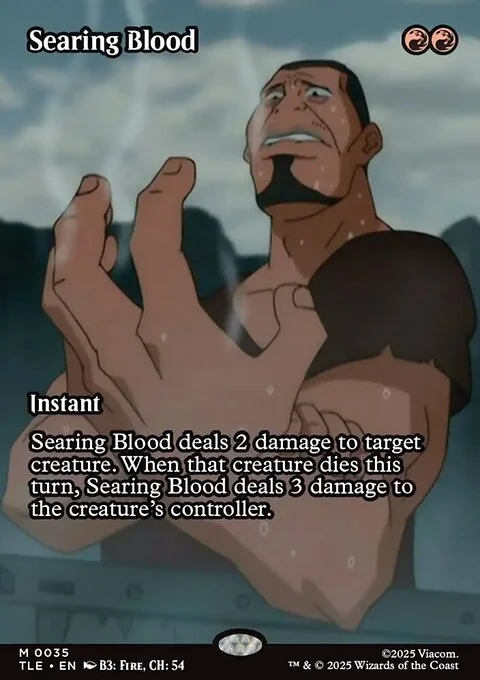 Searing Blood deals 2 damage to target creature. When that creature dies this turn, Searing Blood deals 3 damage to the creature's controller.