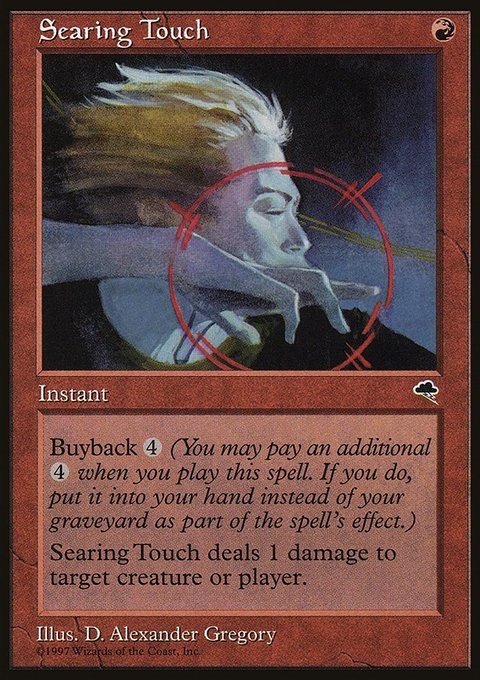 Buyback {4} (You may pay an additional {4} as you cast this spell. If you do, put this card into your hand as it resolves.) Searing Touch deals 1 damage to any target.