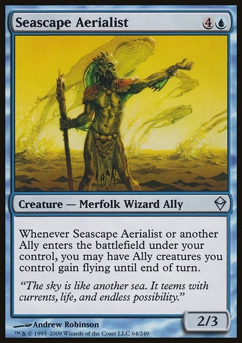 Whenever Seascape Aerialist or another Ally enters the battlefield under your control, you may have Ally creatures you control gain flying until end of turn.
