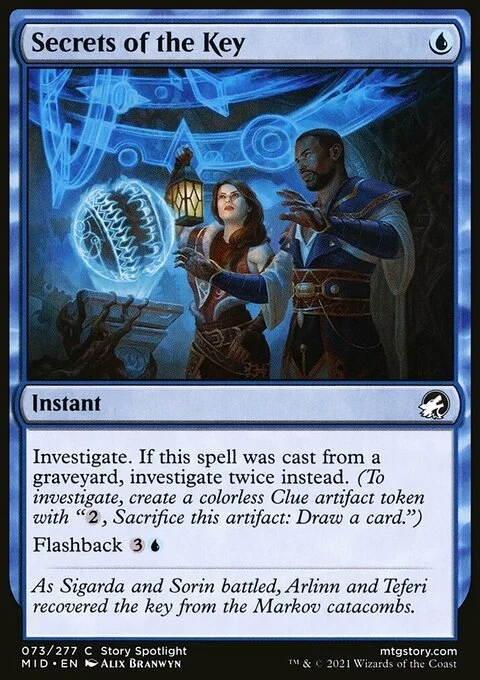 Investigate. If this spell was cast from a graveyard, investigate twice instead. (Create a Clue token. It's an artifact with "{2}, Sacrifice this token: Draw a card.") Flashback {3}{U}