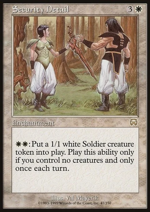 WW: Put a 1/1 white Soldier creature token into play. Play this ability only if you control no creatures and only once each turn.