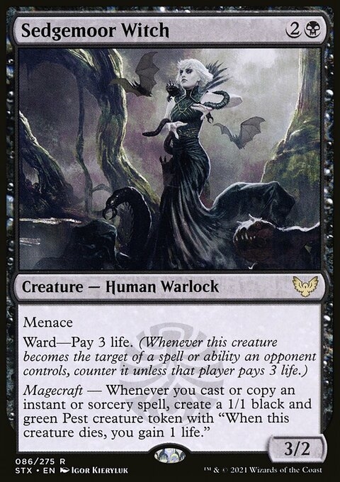 Magecraft — Whenever you cast or copy an instant or sorcery spell, create a 1/1 black and green Pest creature token with "When this token dies, you gain 1 life."