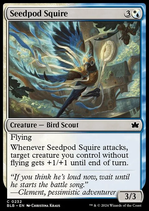 Flying Whenever this creature attacks, target creature you control without flying gets +1/+1 until end of turn.