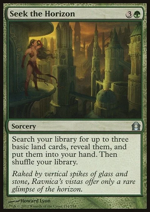 Search your library for up to three basic land cards, reveal them, and put them into your hand. Then shuffle your library.