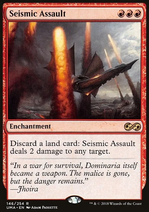 Discard a land card: Seismic Assault deals 2 damage to any target.