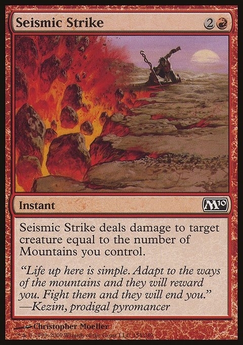Seismic Strike deals damage to target creature equal to the number of Mountains you control.