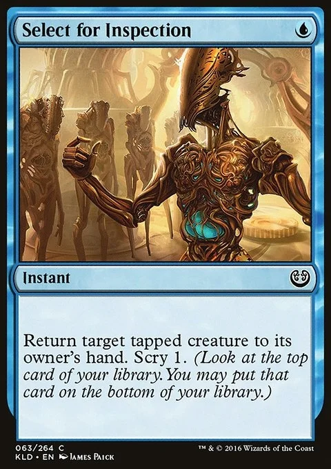 Return target tapped creature to its owner's hand. Scry 1. (Look at the top card of your library. You may put that card on the bottom.)