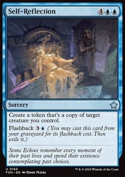 Create a token that's a copy of target creature you control. Flashback {3}{U} (You may cast this card from your graveyard for its flashback cost. Then exile it.)