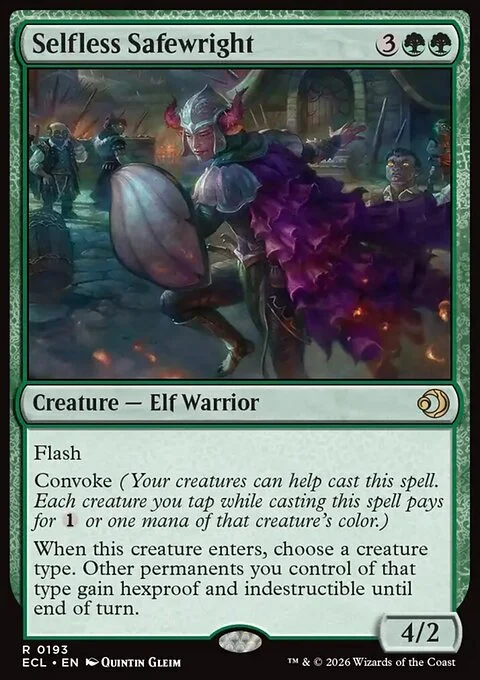Flash Convoke (Your creatures can help cast this spell. Each creature you tap while casting this spell pays for {1} or one mana of that creature's color.) When this creature enters, choose a creature type. Other permanents you control of that type gain hexproof and indestructible until end of turn.