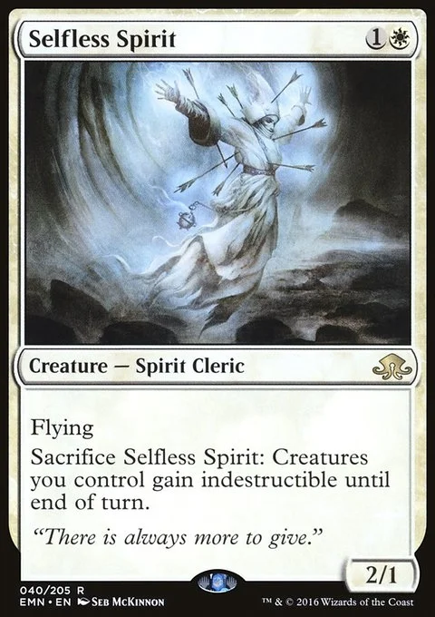 Flying Sacrifice Selfless Spirit: Creatures you control gain indestructible until end of turn.