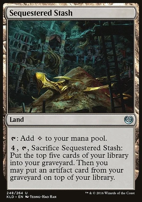 {T}: Add {C}. {4}, {T}, Sacrifice Sequestered Stash: Mill five cards. Then you may put an artifact card from your graveyard on top of your library.