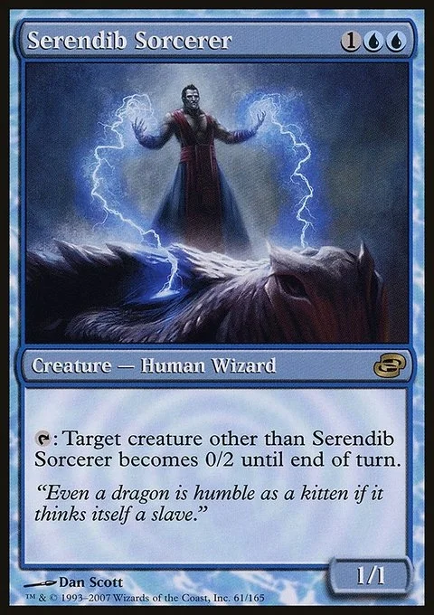 {T}: Target creature other than Serendib Sorcerer has base power and toughness 0/2 until end of turn.