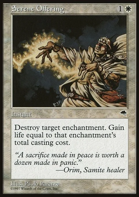 Destroy target enchantment. Gain life equal to that enchantment’s total casting cost.