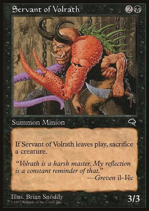 When Servant of Volrath leaves the battlefield, sacrifice a creature.
