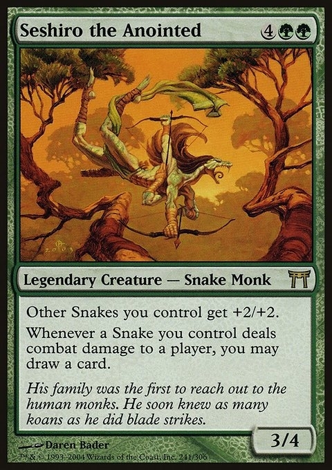 Other Snake creatures you control get +2/+2. Whenever a Snake you control deals combat damage to a player, you may draw a card.