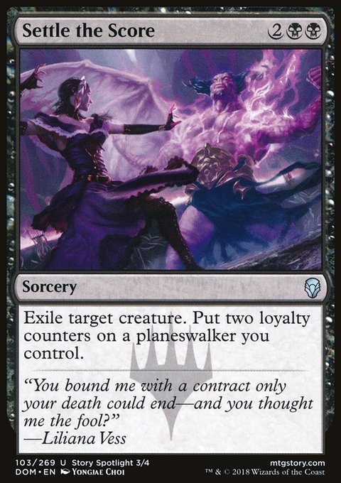 Exile target creature. Put two loyalty counters on a planeswalker you control.