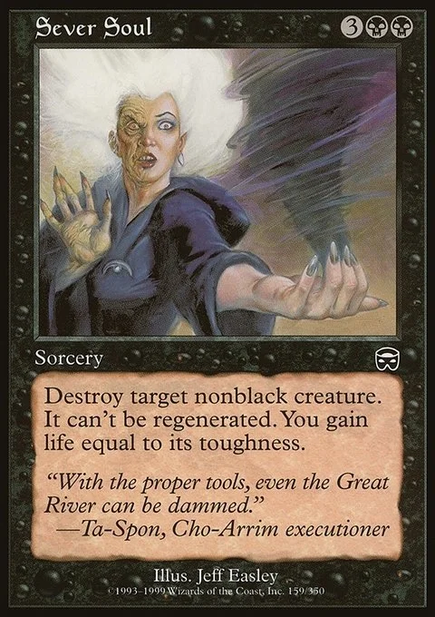 Destroy target nonblack creature. It can't be regenerated. You gain life equal to its toughness.