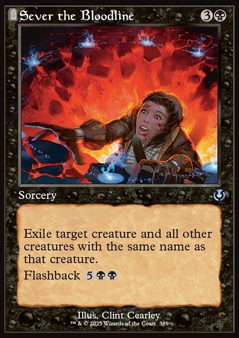 Exile target creature and all other creatures with the same name as that creature. Flashback {5}{B}{B} (You may cast this card from your graveyard for its flashback cost. Then exile it.)