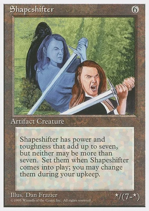 Shapeshifter has power and toughness that add up to seven, but neither may be more than seven. Set them when Shapeshifter comes into play; you may change them during your upkeep.