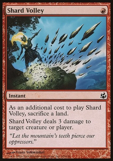 As an additional cost to cast this spell, sacrifice a land. Shard Volley deals 3 damage to any target.