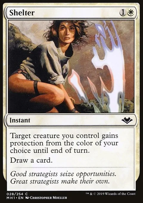 Target creature you control gains protection from the color of your choice until end of turn. Draw a card.