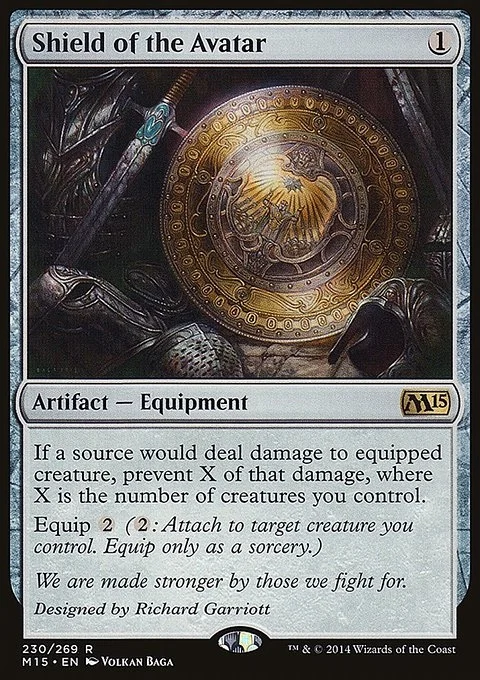 If a source would deal damage to equipped creature, prevent X of that damage, where X is the number of creatures you control.