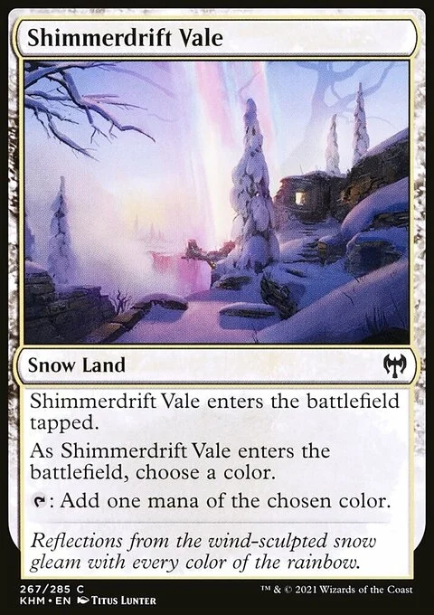 Shimmerdrift Vale enters the battlefield tapped. As Shimmerdrift Vale enters the battlefield, choose a color. {T}: Add one mana of the chosen color.