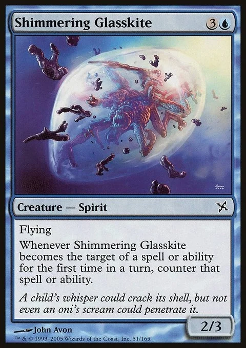 Flying Whenever Shimmering Glasskite becomes the target of a spell or ability for the first time each turn, counter that spell or ability.