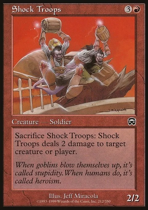 Sacrifice Shock Troops: It deals 2 damage to any target.