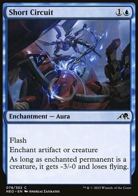 Flash Enchant artifact or creature As long as enchanted permanent is a creature, it gets -3/-0 and loses flying.
