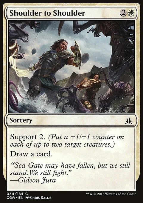 Support 2. (Put a +1/+1 counter on each of up to two target creatures.) Draw a card.
