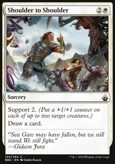 Support 2. (Put a +1/+1 counter on each of up to two target creatures.) Draw a card.