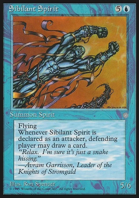Flying: Whenever Sibilant Spirit is declared as an attacker, defending player may draw a card.