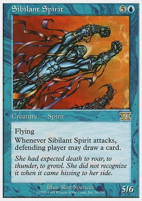 Whenever Sibilant Spirit attacks, defending player may draw a card.