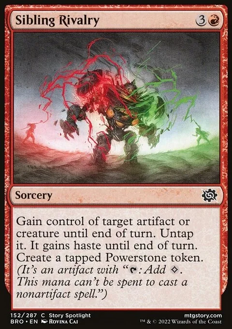 Gain control of target artifact or creature until end of turn. Untap it. It gains haste until end of turn. Create a tapped Powerstone token. (It's an artifact with "{T}: Add {C}. This mana can't be spent to cast a nonartifact spell.")