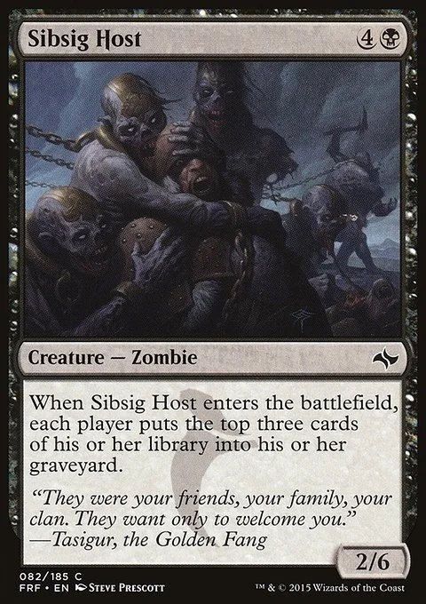 When Sibsig Host enters the battlefield, each player puts the top three cards of their library into their graveyard.