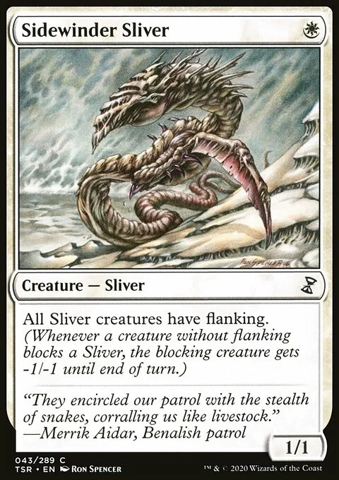 All Sliver creatures have flanking. (Whenever a creature without flanking blocks a Sliver, the blocking creature gets -1/-1 until end of turn.)