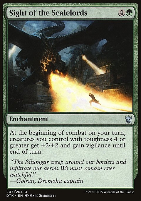 At the beginning of combat on your turn, creatures you control with toughness 4 or greater get +2/+2 and gain vigilance until end of turn.