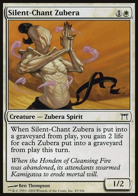 When Silent-Chant Zubera dies, you gain 2 life for each Zubera that died this turn.