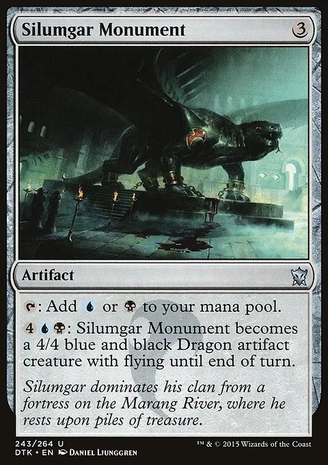 {T}: Add {U} or {B}. {4}{U}{B}: Silumgar Monument becomes a 4/4 blue and black Dragon artifact creature with flying until end of turn.