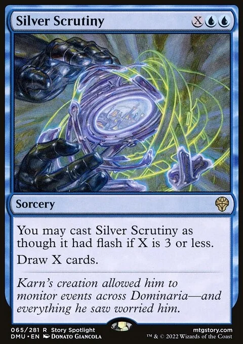 You may cast Silver Scrutiny as though it had flash if X is 3 or less. Draw X cards.
