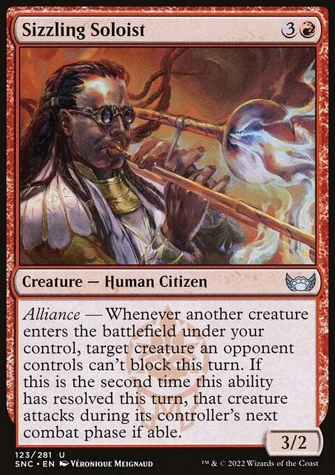 Alliance — Whenever another creature enters the battlefield under your control, target creature an opponent controls can't block this turn. If this is the second time this ability has resolved this turn, that creature attacks during its controller's next combat phase if able.