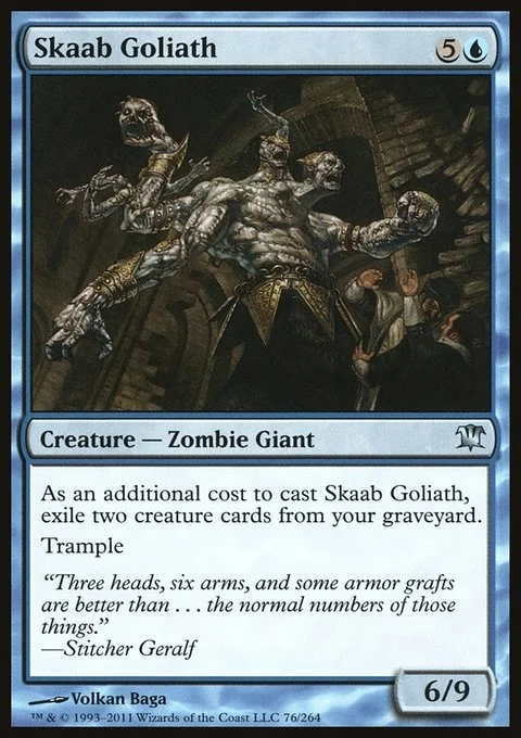 As an additional cost to cast this spell, exile two creature cards from your graveyard. Trample (This creature can deal excess combat damage to the player or planeswalker it's attacking.)