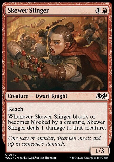 Reach Whenever this creature blocks or becomes blocked by a creature, this creature deals 1 damage to that creature.